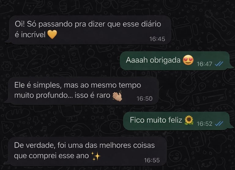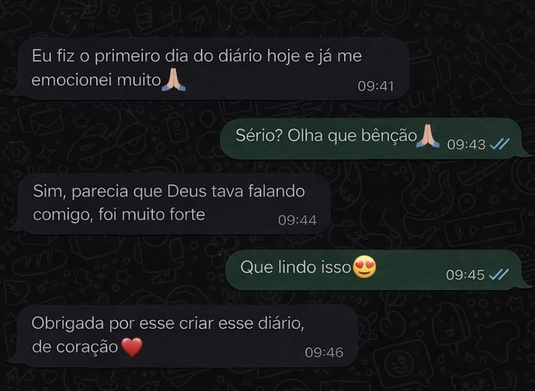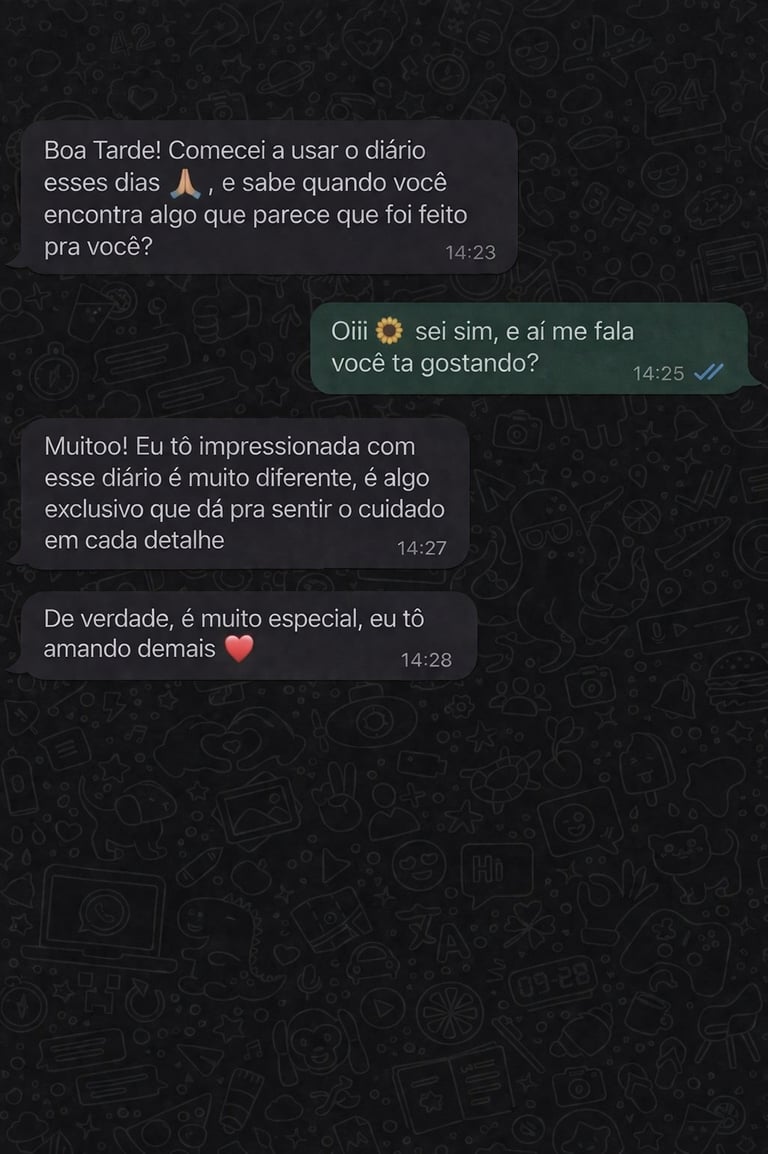 Não! O diário foi pensado para a sua rotina real. Em poucos minutos por dia, você já consegue viver um momento de conexão com Deus. A proposta é ser leve, simples e acolhedora — nunca uma obrigação.
