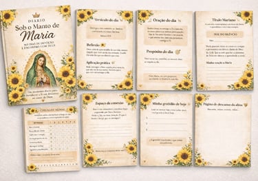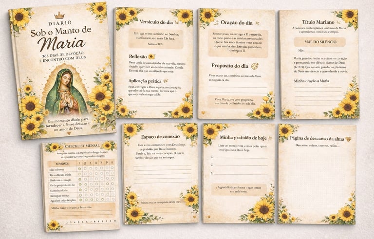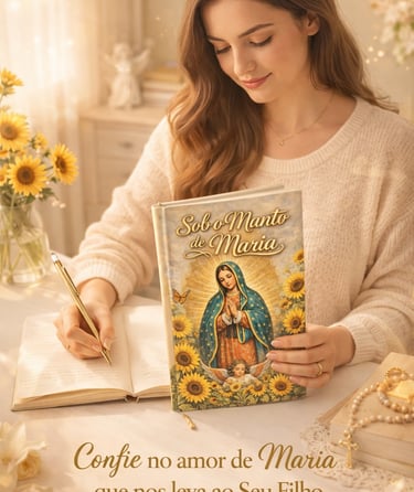 O Diário Sob o Manto de Maria se torna um refúgio diário — um momento só seu, onde você consegue parar, respirar e se reconectar com Deus de forma leve e guiada.