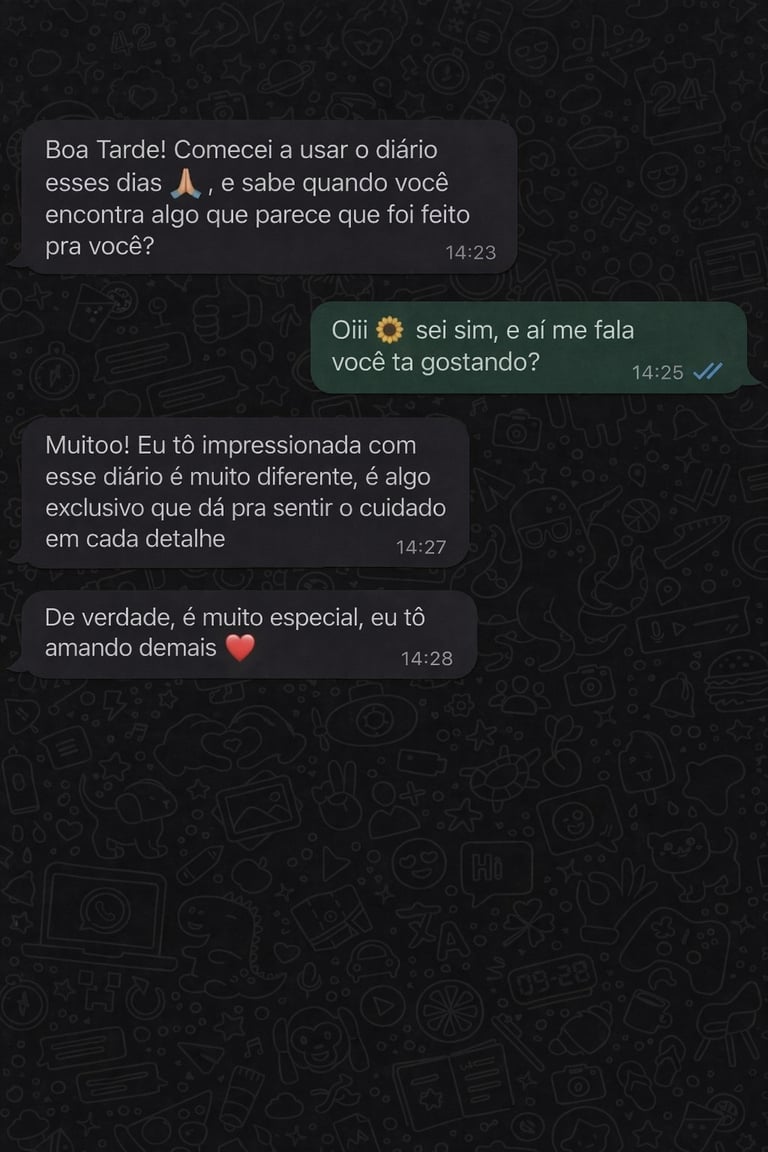 Não! O diário foi pensado para a sua rotina real. Em poucos minutos por dia, você já consegue viver um momento de conexão com Deus. A proposta é ser leve, simples e acolhedora — nunca uma obrigação.